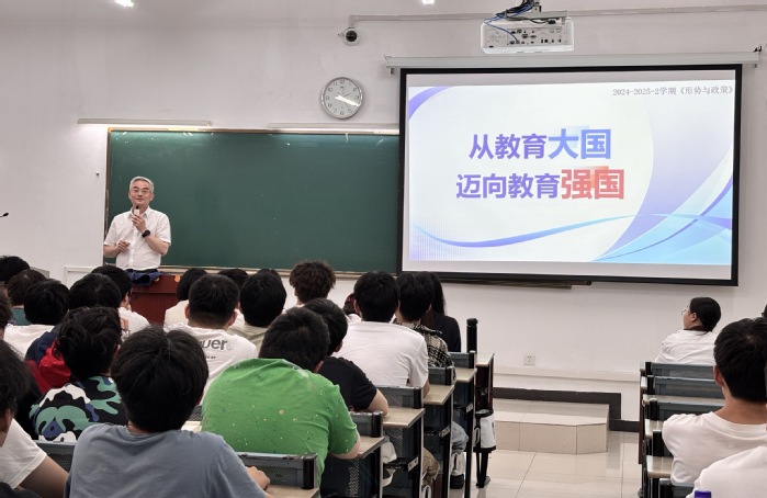 6月3日下午,校党委书记邬平川走进35-108教室,以“从教育大国迈向教育强国”为题,为23级网络工程、软件工程和计算机科学技术等专业学生讲授《形势与政策》课。他先以“之前的教育与现在的教育有什么变化与发展”问题引发学生热议,进而从教育强国建设的重大意义、现实基础和战略部署三个方面,系统阐释了“为何建、建什么、如何建”的核心命题。授课中,他结合学校应用型大学定位,以感人故事与详实数据娓娓道来,让学生深刻认识到自身在教育强国建设中的责任。
