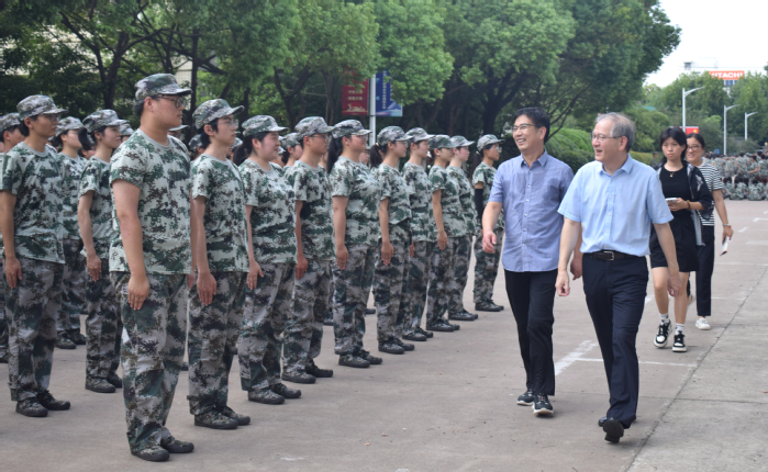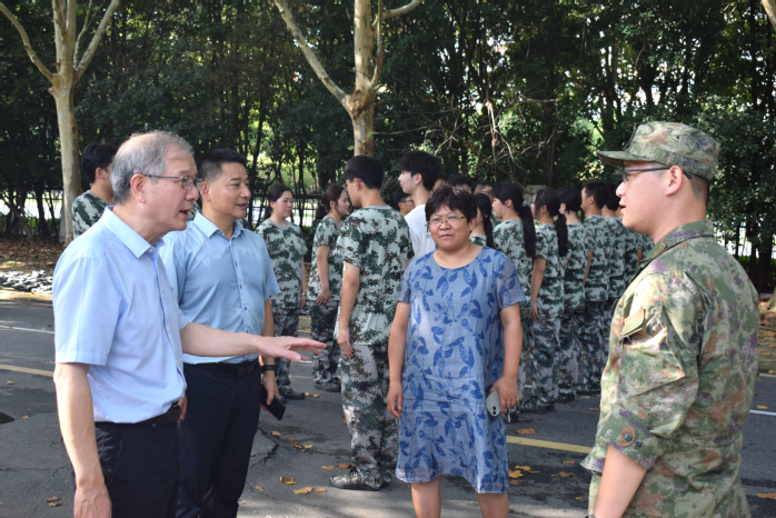 9月20日,党委书记王其东来到操场,亲切看望慰问承训的教官和参训的新生们。王其东详细了解了军训工作开展情况,对军训过程中教官的严格要求、带训辅导员的辛勤付出和同学们的刻苦训练表示肯定。他希望学生们在军训期间严格遵守纪律,增强个人体魄,学会团结协作,共同面对挑战。