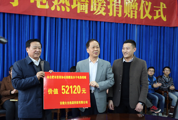 12月25日,合肥市慈善协会会长周富如一行赴我校参加电热墙暖捐赠仪式,党委副书记、校长张文兵,纪委书记洪家友在图书馆会议室热情接待来宾。校办、工会、图书馆、团委相关负责人参会。